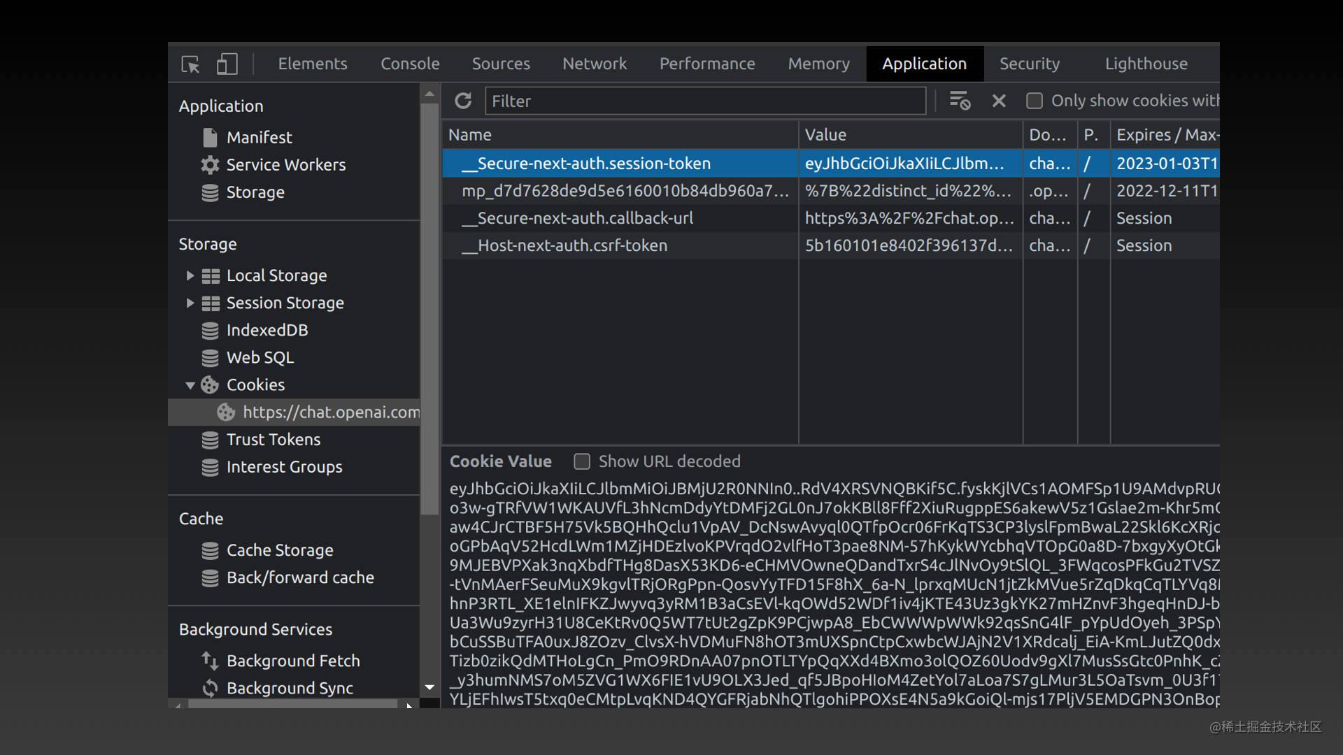 复制 __Secure-next-auth.session-token 的值: