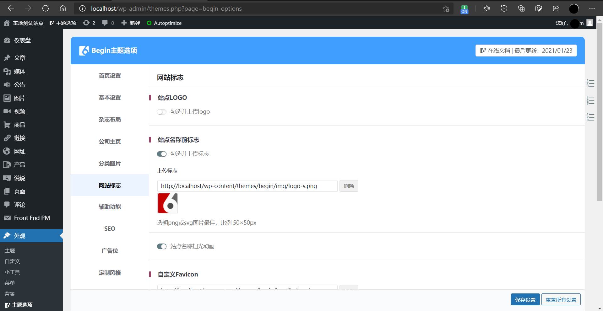修改代码来自知更鸟Begin主题2021年1月版;修改了两个文件begin\inc\options\inc\framework-admin.php和begin\css\options.css